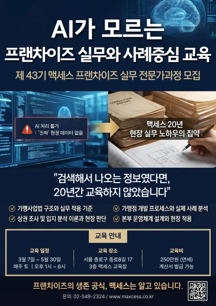 - [프랜차이즈교육]제42기 맥세스 실무형 프랜차이즈 전문가 과정 9~15회차2025-12-29