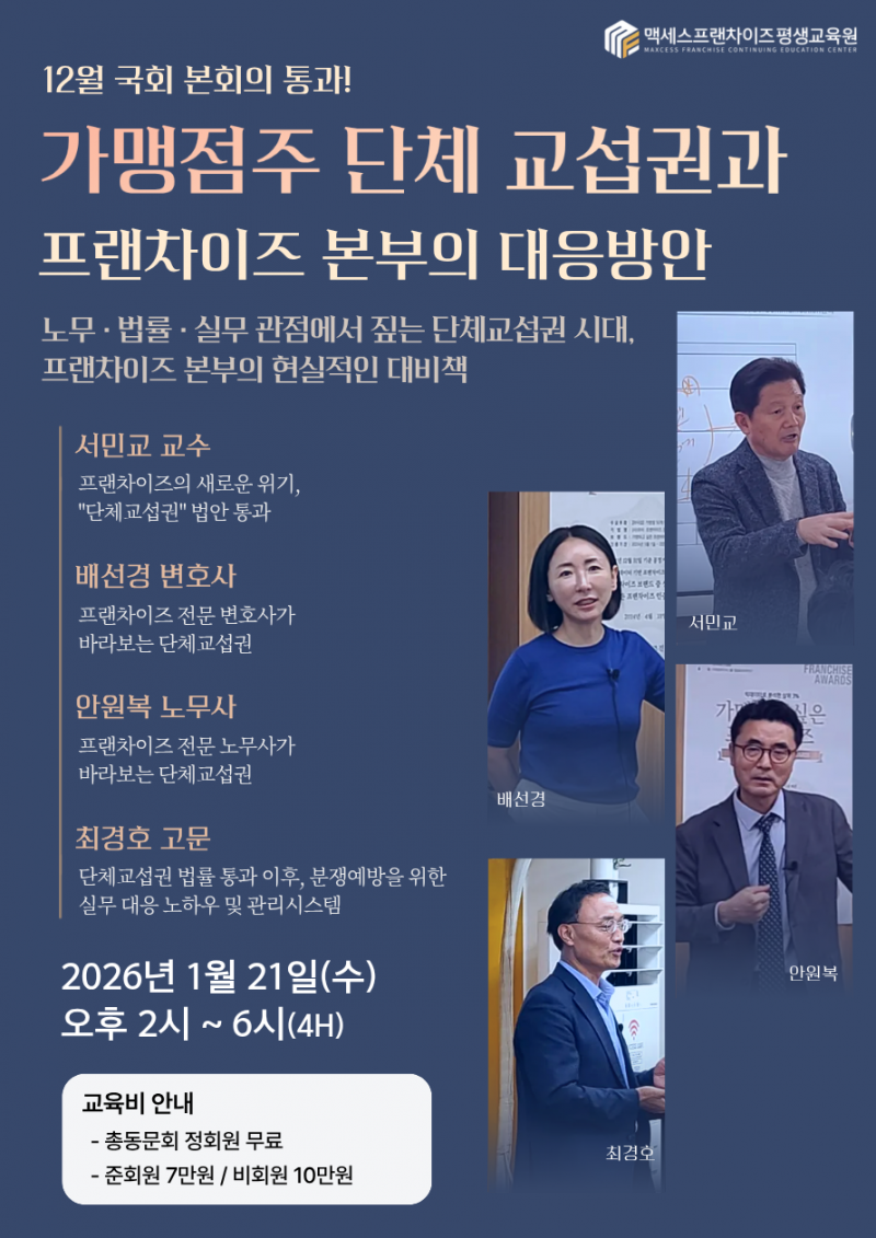 12월 국회 본회의를 통과한 가맹점주 단체교섭권.